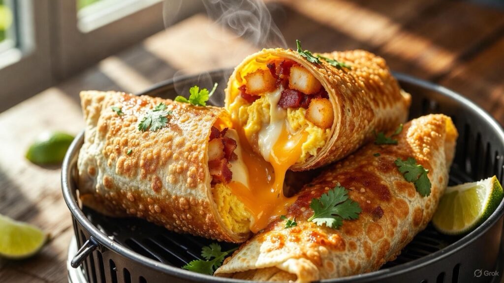 Keywords: air fryer breakfast burritos, easy breakfast burritos, make ahead breakfast, freezer breakfast burritos, crispy breakfast burritos, meal prep breakfast