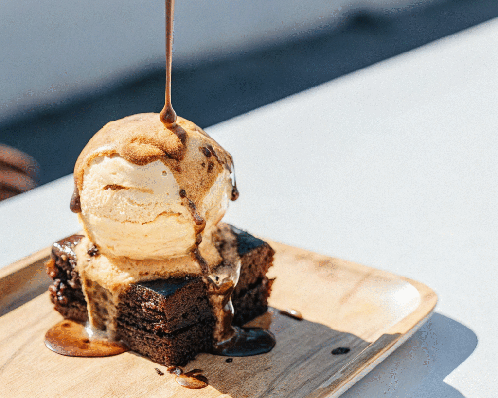 Temperature Contrast: Serving hot pudding with cold ice cream creates sensory contrast that’s incredibly satisfying and makes both elements taste better.
