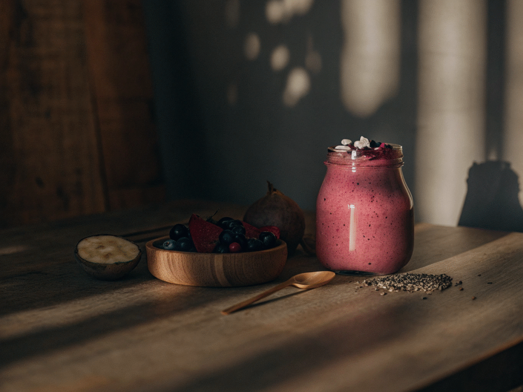 Why it’s powerful: Beets support liver detox, berries provide antioxidants, yogurt adds probiotics for gut health.
