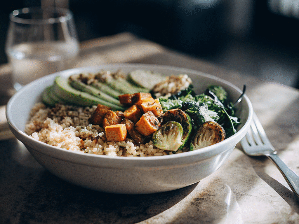 - Lunch: Quinoa & Roasted Vegetable Bowl