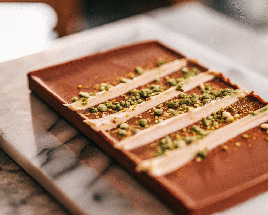 Flavor Balance: The sweet chocolate is balanced by the nutty pistachios, earthy tahini, and touch of salt. None of the flavors overpower—they work in harmony.